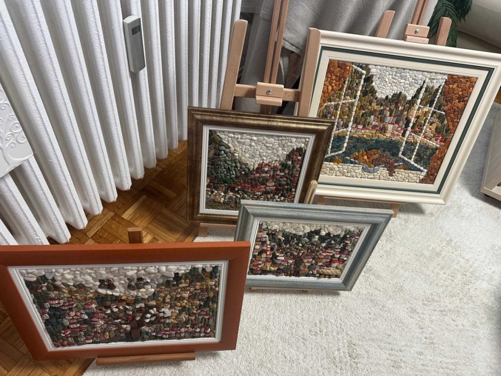 - Zvuk zveckanja kamena je nešto što me ispunjava. Dok radim, uživam. Ovo je moj radni prostor gde ja delim ljubav sa kamenom. Uživam u zvuku, uživam u njegovim bojama i pravim svoja mala nova dela. Svaki kamenčić naći će neku svoju primenu. Naći će neko svoje mesto, novu priču. Daću mu dušu, a on meni ljubav- kaže za agenciju Rina ova Čačanka koja kamenu daje, kako kaže, život u pokretu.