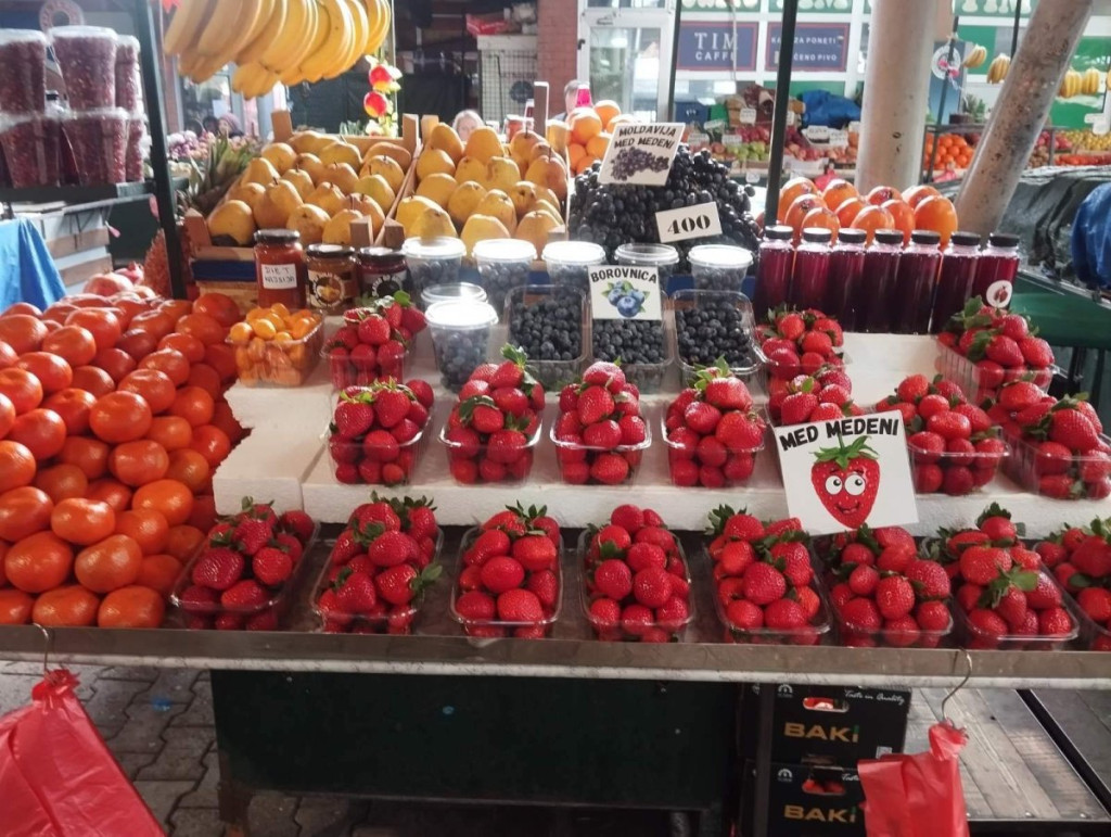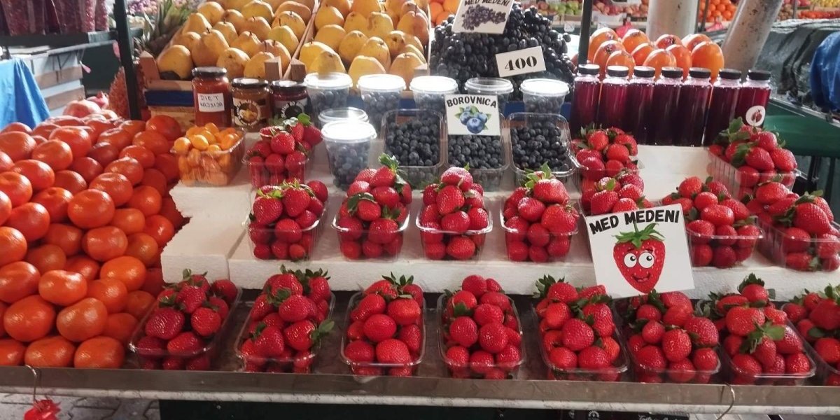 Krupne, crvene, mame sa tezgi na kojima uz mala pakovanja piše "med medeni". Jedno pakovanje od 500 grama košta od 1.000 do 1.200 dinara. Na manje se ne prodaju, kažu prodavci.
