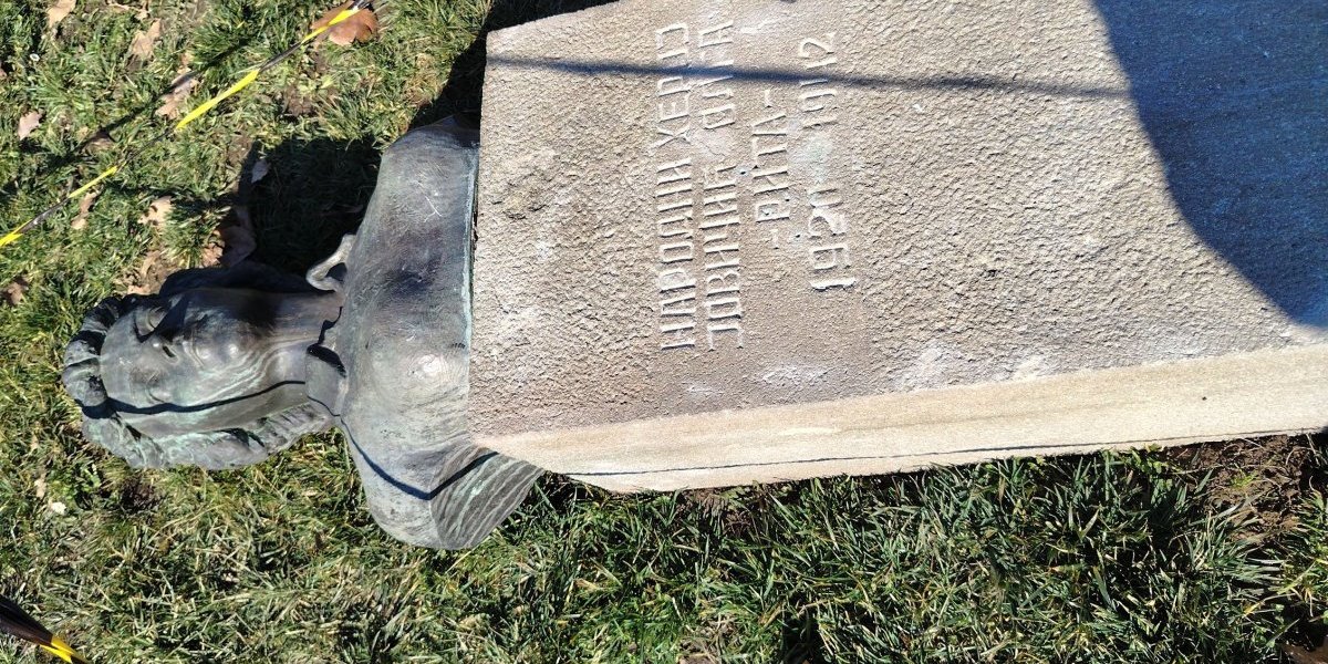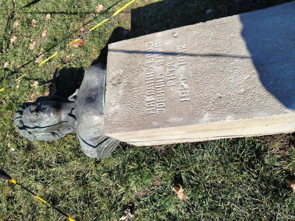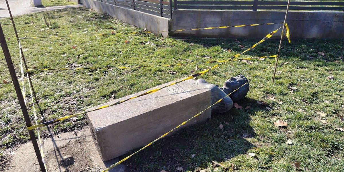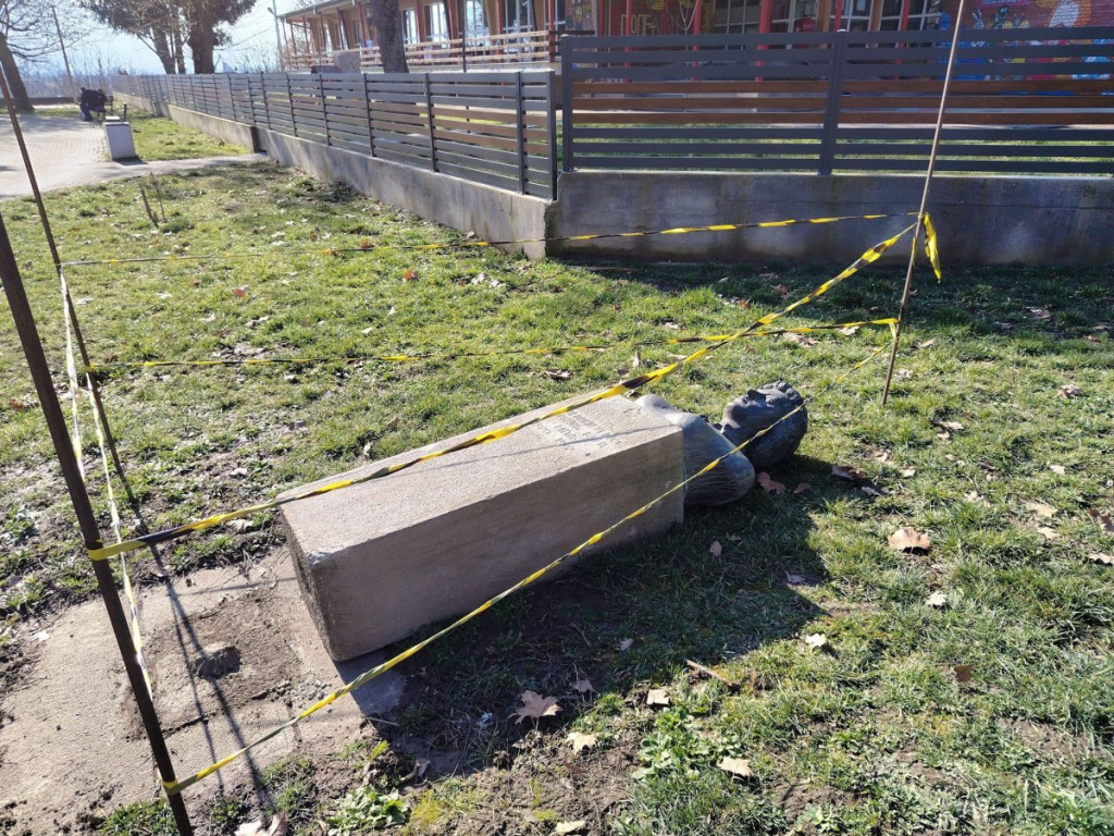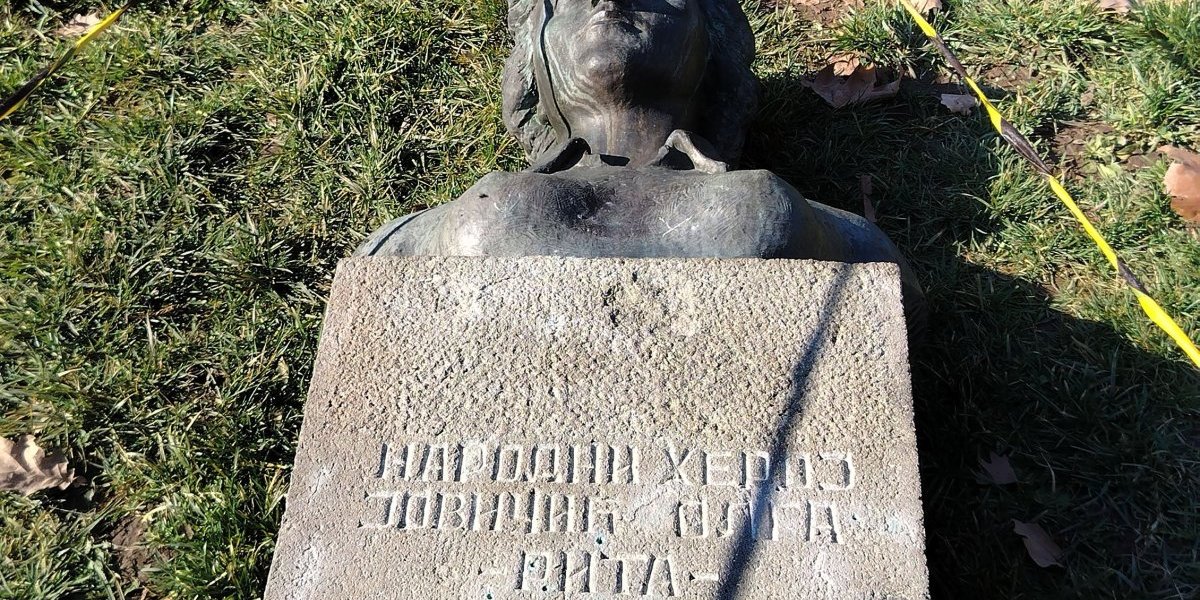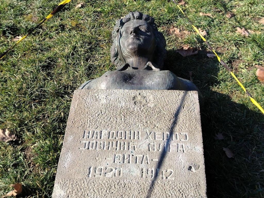 Spomenik sa bistom narodnog heroja Olge Jovičić Rite, težak nekoliko stotina kilograma, očigledno iz čiste obesti izvalili su sa mesta i oborili ga.