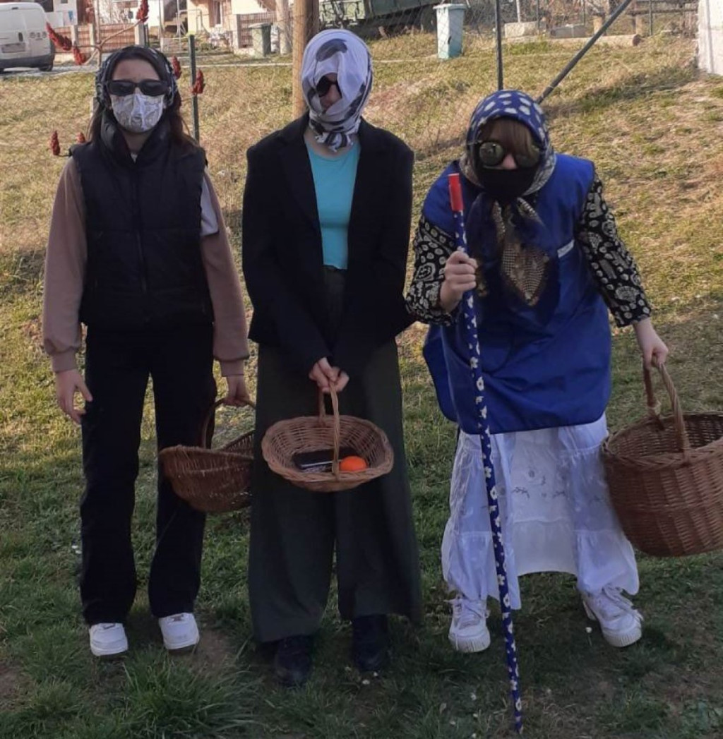 - Cele sedmice se maskira i obilazi selo, ali nedelja je najvažnija. Mi smo ranije išli i u susedna sela, sakupi se nas nekoliko, pevamo, smeh, šala... Daruju nas onim što se ima u kući, najčešće je to bila slanina, jaja, po neki slatkiš, voće. Dobijali smo i po neki dinar uglavnom u metalu, valja se tako. Na kraju dana se dele sakupljeni pokloni, sreći tad nije bilo kraja. Sada zbog ovog virusa i to se dosta promenilo, deca ne mogu da se okupljaju u većem broju i da šetaju po selu, nego eto tako malo u komšiluku čisto da sačuvaju običaj.