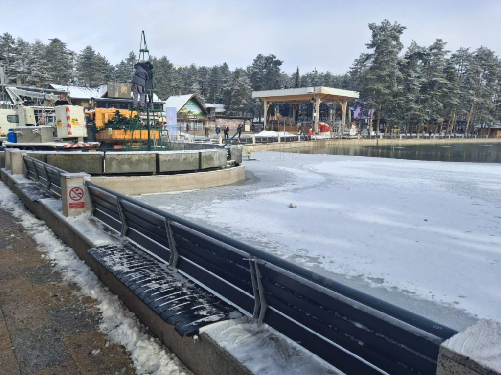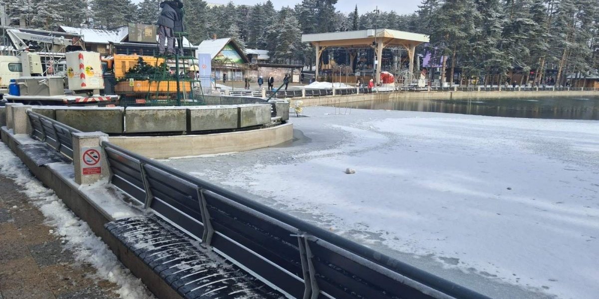 Dok su se u gradovima širom Srbije beležile natprosečno visoke temperature, a bašte kafića ponovo počele da se pune, na Tavničkom jezeru zadržala se prava zimska slika.