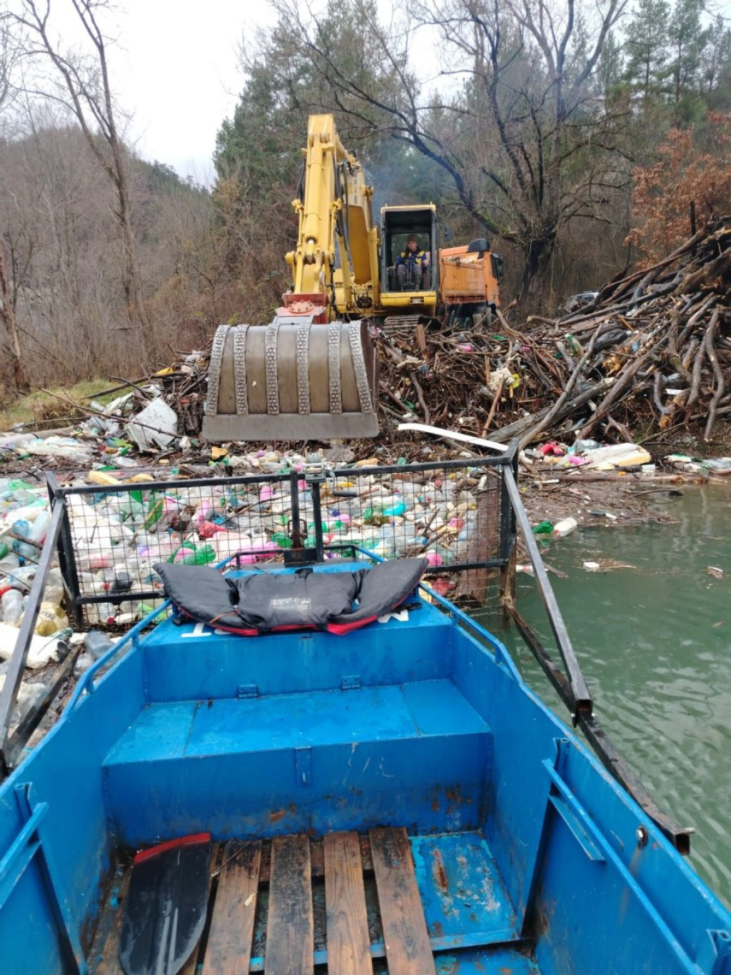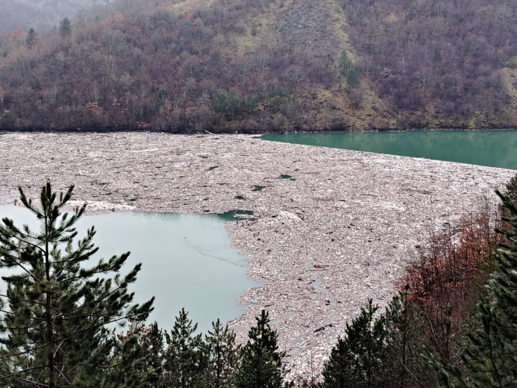 Situacija na Višegradskom jezeru takođe je katastrofalna. Velike količine smeća zaustavljene su lančanicom, a radnici HE Višegrada svakodnevno vade i kamionima odvoze smeće.