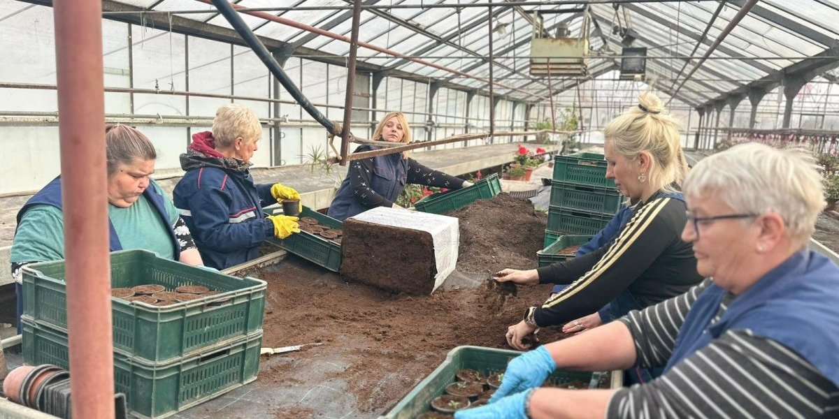 Marina, jedna od zaposlenih, kaže da trenutno pune čaše za sadnju i "pikiraju" biljke.