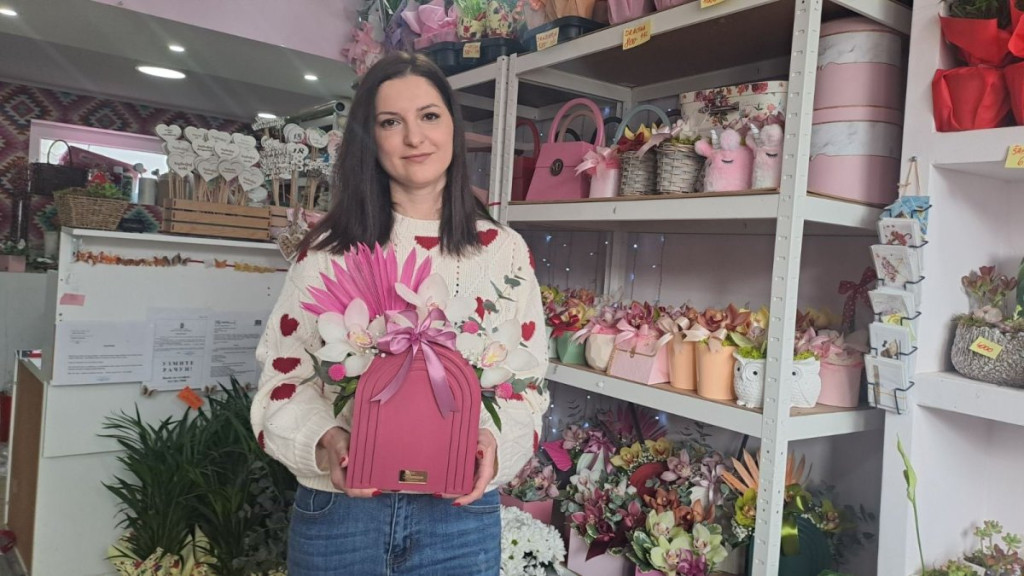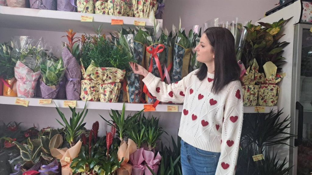 Dunja Vranjin, vlasnica jedne cvećare u Kikindi, širi ljubav i radost tradicionalnim poklanjanjem cveća povodom Osmog marta.