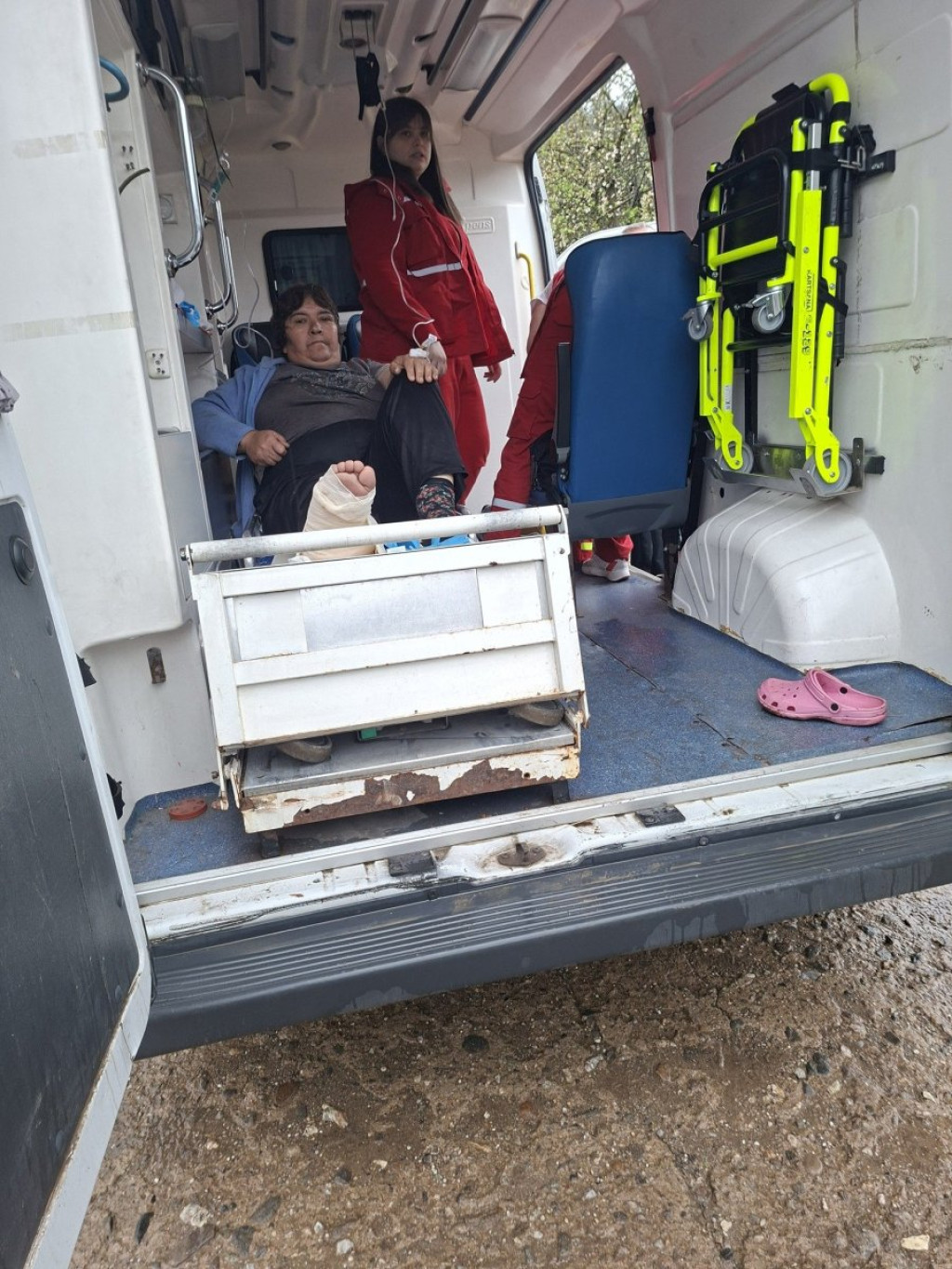 - Žena je ispratila dete u školu, kiša je padala, put loš, okliznula se i zadobila otvoren prelom noge u zglobu. To su bolovi strašni - ispričali su meštani koji su se brzo organizovali i ženu najpre kolicima preko Trstenske reke prevezli do puta, a onda automobilom do ambulante u selu Vlase.