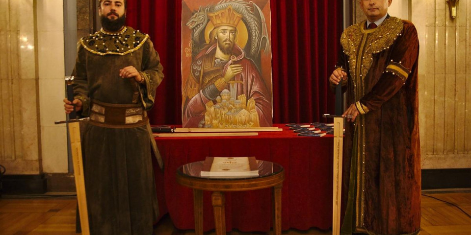 Mač dodeljen Njegovoj svetosti Patrijarhu Irineju primio je protojerej-stavrofor Branko Topalović, namesnik Beogradski.