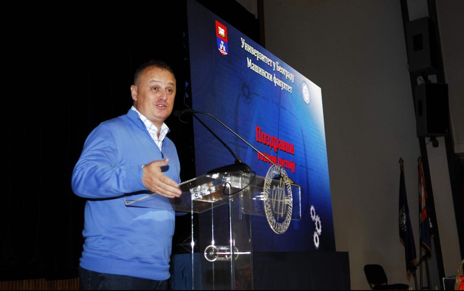 Ministar za inovacije i tehnološki razvoj Nenad Popović, koga je dekan predstavio kao bivšeg studenta i "jednog od najboljih izdanaka ove kuće", rekao je da se sa zadovoljstvom seća vremena, kada je na katedri za proizvodno mašinstvo slušao predmete koji su u to vreme za njegove kolege i njega imali "čudne nazive", poput Proizvodne kibernetike, kompjuterski integrisanih sistema, industrijskih robota, kompjuterske grafike...
