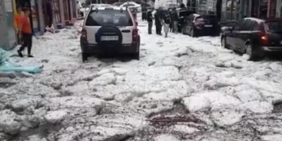 Bujice vode i leda slivale su se danas ulicama grada, a vozila su ostala gotovo potopljena.