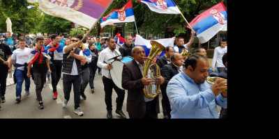 Oni su nosili srpske i ruske zastave i izazvali oduševljenje svojih sugrađana koji su ih pozdravljali sa terasa i iz kafića.