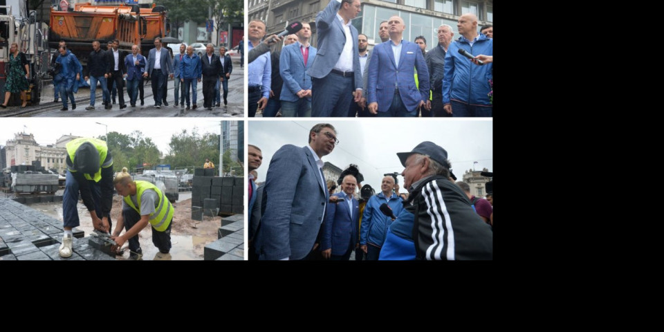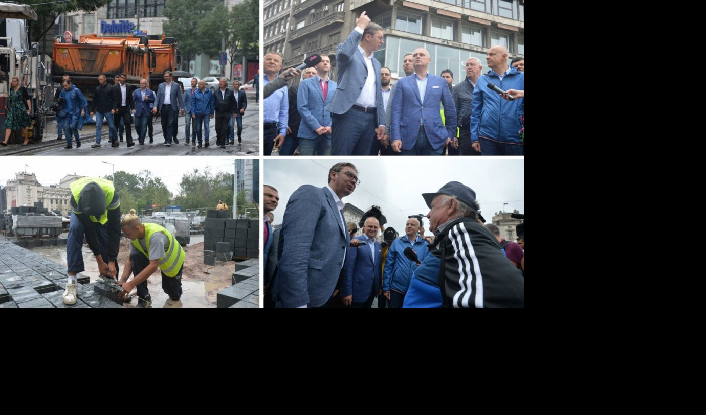 10.25 - Vučić je počeo zvanično obraćanje medijima zahvalivši se na požrtvovanosti radnicima koji rade na rekonstrukciji trga. Dodao je i da nema odmora do 1. septembra, dok se ne završe radovi.