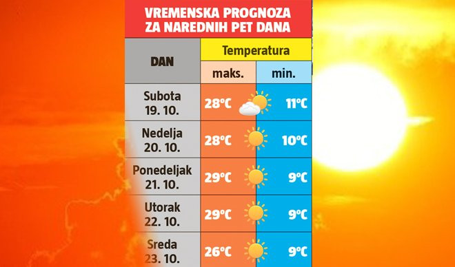 On napominje da se niže temperature, od 10 do 15 stepeni, uobičajene za ovo doba godine, očekuju poslednjih dana oktobra i početkom novembra.