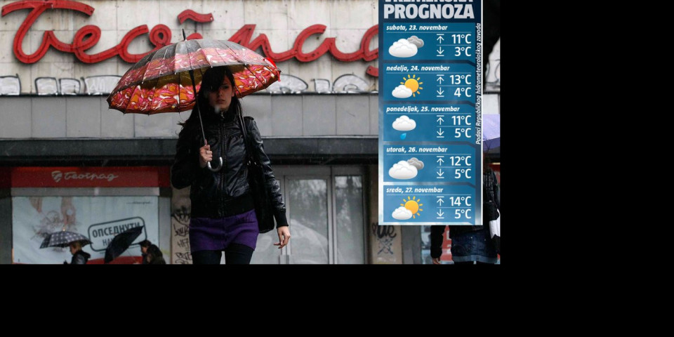 Kako pokazuje dugoročna prognoza Republičkog hidrometeorološkog zavoda, u narednih 30 dana smenjivaće se sunce, vetar, kiša i sneg. Jutarnja temperatura će se kretati od minus dva do pet, dok će najviša dnevna biti oko 10 stepeni. Prvi sneg, koji će pasti početkom sledećeg meseca, neće se zadržati u nižim krajevima, a formiranje snežnog pokrivača moguće je samo u planinskim predelima.