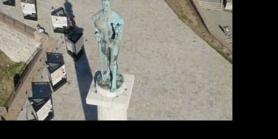 - U ateljeu vajara se trenutno radi na ugradnji nove konstrukcije od nerđajućeg čelika unutar skulpture. Detalje tehničkog rešenja oslanjanja figure uradio je Građevinski fakultet. Rešenje će obezbediti trajnu i sigurnu vezu između skulpture i stuba - navedeno je u opisu slike.