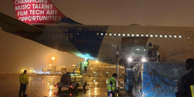 Avion "Er Srbije" Erbas A-330 iz Šangaja sleteo je jutros u Beograd sa novom turom pomoći koje je Srbiji poslala bratska Kina