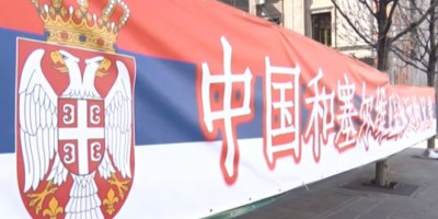 Na transparentu dugačkom 50 metara napisano je “Srbi i Kinezi zauvek braća” na srpskom i kineskom jeziku.