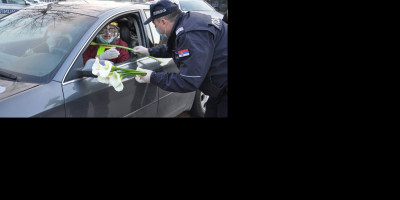 Damama koje rade u zdravstvu poklanjali su cveće, dok su muškarcima poklanjali šolje sa porukom “Policija kaže hvala”, hemijske olovke i blokove.