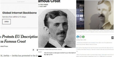 I Njujork tajms i Blumberg i Vašington tajms preneli su vest da je Srbija protestovala kod Evropske unije nakon što je u jednoj od njenih publikacija veliki američki naučnik srpskog porekla Nikola Tesla predstavljen kao Hrvat ii čovek koji je bio "jedan od prvih ljudi koji je otkrio rendgenski snimak".