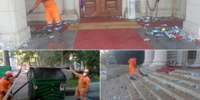 - Ovo je deo haosa koji su huligani koji su noćas uništavali i palili Beograd ostavili za sobom. Oni koji nisu učestvovali na izborima sada bi na silu da zauzmu Narodnu skupštinu, puna su im usta Kosova i Metohije a srbuju hiljadama kilometara od KiM gde ovi “heroji” ne smeju da odu. Huligane koji su rušili Beograd organizovao je radikalni desničar Srđan Nogo, a inspiratori su bili Đilasov kum i politički guru Mlađan Đorđević i njihov lični vladika i "biznismen" koji se juče proslavio izjavom da bi da sruši hram Svetog Save - vladika Grigorije. Dok se država bori da sačuva zdravlje i živote naših građana od koronavirusa, ova politička grupacija vodi politiku ultradesničarskog paljenja i rušenja institucija i gradske i državne imovine koju su, siguran sam, sinoć osudili svi građani normalne i pristojne Srbije za kakvu se borimo - napisao je zamenik gradonačelnika Beograda Goran Vesić.