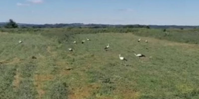 Na jednu njivu sletelo je 26 roda i mirno kljuckalo šetkajući se. Rode je na svojoj parceli zatekao meštanin Neli Nikolić i sve zabeležio na snimku.