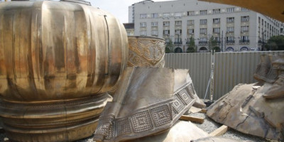 Prva četiri kamiona sa delovima spomenika, odnosno delovi za postament, u Beograd su stigli do juče, a kako je tada rekao zamenik gradonačelnika Goran Vesić do 31. avgusta stići će druga četiri kamiona, dok će poslednja dva biti tu do 15. septembra.