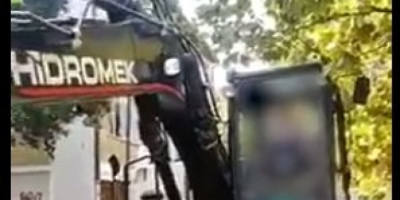 Na snimku se vidi kako jedan od stipendista JKP Beogradski vodovod i kanalizaciju kašikom bagera pali upaljač, a da ga tom prilikom ne sruši.
