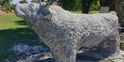Naš umetnik, profesor Velimir Karavelić svojski se namučio da iz gromade neverovatne tvrdoće na svetlost dana i pred publiku iznese ovog monumentalnog bika, impresivne snage, kaže Simić, ponosno predstavljajući skulpturu, najnoviju turističku atrakciju Bare Zasavice.