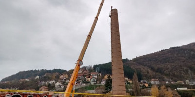 (FOTO) UŽIČANI NEGODUJU, NESTAJE IM DEO ISTORIJE: Počelo rušenje 34 metra visokog dimnjaka JEDNOG OD SIMBOLA UŽICA!