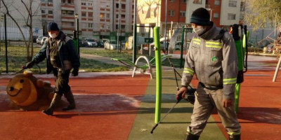 - Osim javnih površina, traktorskim atomizerom i ručnim prskalicama radi se i dezinfekcija javnih ustanova kojima su podeljene dovoljne količine sredstava za tu aktivnost: predškolske ustanove, osnovnim i srednjim školama, ustanovama kulture i stambenim zajednicama.