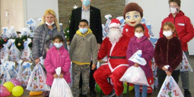 Mališani iz siromašnih porodica, deca korisnika toplog obroka Narodne kuhinje u Zrenjaninu dobili su od Deda Mraza novogodišnje paketiće, koji su im uručeni u sali Crvenog krsta u Zrenjaninu, a sa njima se družio i gradonačelnik Zrenjanina, Simo Salapura