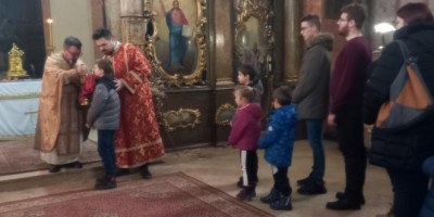 Dok u je u crkvi Svetog Nikole ove godine izostalo deljenje delova velike česnice vernicima, u hramu Svetih Kozme i Damjana ovaj simbol zdravlja, sreće i sveopšteg blagostanja, donet je u velikoj tepsiji, a kasnije podeljen prisutnima. U oba hrama, vernicima su upućene čestitke za Božić radosnim hrišćanskim pozdravom: „Mir Božiji, Hristos se rodi“!