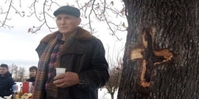 „Danas je mom ocu 66 rođendan, veliki je praznik Jovan Krstitelj i evo već treću godinu mi se okupljamo pored drveta Zapis koje smo mi i obeležili. Sekirom obnovimo ovaj krst koji smo urezali malo zasečemo koricu drveta to je običaj.
