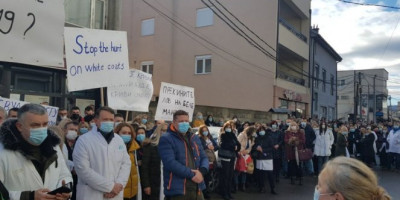 Nekoliko stotina zdravstvenih radnika, koji rade u sistemu Republike Srbije, danas je protestnom šetnjom od Zdravstvenog centra u Severnoj Mitrovici do zgrade Osnovnog tužilaštva, iskazalo nezadovoljstvo zbog, "neshvatljivih i nehumanih poteza" pravosuđa i Ministarstva zdravlja u Prištini