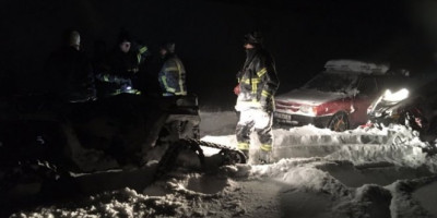 Automobil se zaglavio u snegu i do njega su se kroz smetove, po izrazito nepovoljnim vremenskim uslovima probili vatrogasci spasioci iz leskovačke jedinice, sa motornim sankama i kvadovima guseničarima.