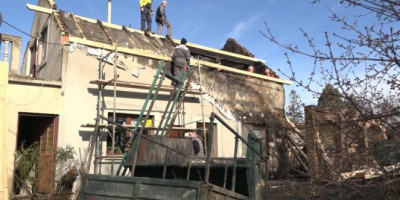 Desetak kršnih mladića i sredovečnih komšija su raščistili sav šut i uklonili ostatke zgarišta, a danas od ranog jutra već su podizali krovne grede, kako bi se podigao krov u narednih nekoliko dana, za koje je najavljeno lepo vreme, bez kiše i snega. Komšije su na mobi, , ali je stigao i građevinski materijal iz firme čiji je gazda Đorđu kazao da će mu platiti „ kad mu da Bog ili zaradi kad obnovi
