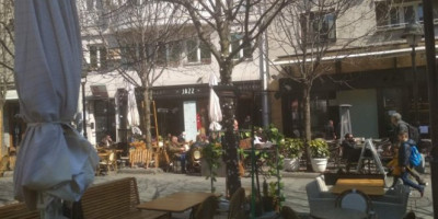 Oni su sa svojom kafom za poneti seli u baštu ovog bara i ponašaju se kao da korona ne postoji.