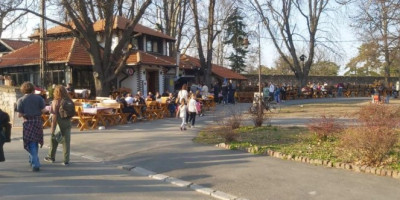 Ispred jedne kafane na Kalemegdanu stolovi su postavljeni, na nekima se mogu videti i karirani stoljnaci, a naroda više nego kada je sve otvoreno.