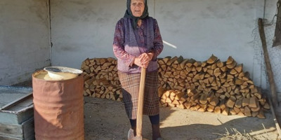 Rođena je 1928. godine, pamti Drugi svetski rat, preživela je mnoge zarazne bolesti, a i korona je ovu žilavu staricu zaobišla. Dok veštim i uigranim pokretima, kao od šale, velikom i teškom sekirom raspolućuje cepanice, visprena Banaćanka uspravnih leđa žali se jedino na reumu u rukama.