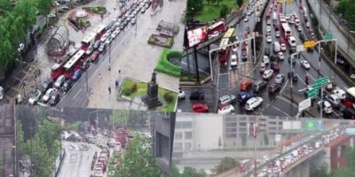 I dok su pešaci jurili da se sklone dok ne prođe oluja, ionako velike gužve na glavnim gradskim saobraćajnicama postale su još veće.