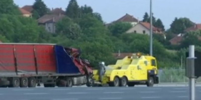Saobraćaj se sada odvija preticajnom saobraćajnom trakom, dok su vozna i zaustavna saobraćajna traka zatvorene zbog utovara robe koja je ispala iz teretnog vozila, saopštilo je JP "Putevi Srbije".
