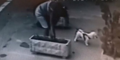 Na snimku sigurnosne kamere vidi se gospođa koja je po svemu sudeći šetnju sa psom "začinila" i krađom cveća iz žardinjere ispred jednog ulaza.