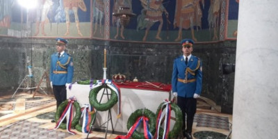 Nakon liturgije usledilo je polaganje venaca na sarkofag kralja Oslobodioca. Vence su, pored izaslanice predsednika Srbije, ministarke Darije Kisić Tepavčević, položili i delegacije Ministarstva odbrane i Vojske Srbije, porodica Karađorđević, predstavnici Srba iz regiona, predstavnici opštine Topola i Zadužbine kralja Petra.