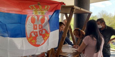 Obezbeđeno je oko hiljadu zastava sa srpskim grbom, za one koji su želeli da je preuzmu.