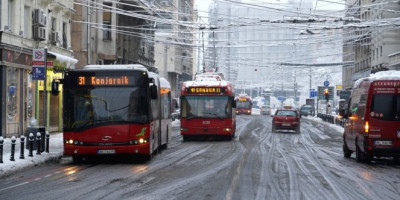 Težak udes dogodio se na kružnom toku kod Tržnog centra Ušće jutros oko 9 časova, kada je došlo do sudara dva autobusa.