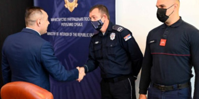 Aleksandar Taleski (28), vatrogasac-spasilac, kojeg je danas odlikao ministar unutrašnjih poslova Aleksandar Vulin, uspeo je da posle svih obaveza stogne u dom Novovića da se upoznaju i ispuni želju Miletu i Ljiljani kojoj je spasao život za Svetog Luku, kada je slavska sveća upalila deo kuće.