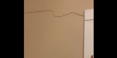 Tako se na društvenim mrežama pojavio snimak na kom se vidi napukao zid, a korisnica je napisala da je reč o posledicama zemljotresa u Kragujevcu.