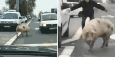 Nedaleko od centra Beograda zabeležena je nesvakidašnja scena. Naime, dvojica muškaraca snimljena su u pokušaju hvatanja - svinje.