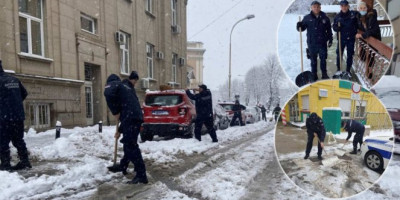 Kako otkrivaju ove fotografije, policajci nisu žalili truda, već su se prihvatili lopata da bi pomogli građanima i omogučili im da sigurnije hodaju ulicom uprkos snežnim nanosima.