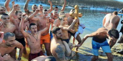uprkos koroni virusu i mrazu, najhrabriji među vernicima zaplivali su u ledenoj vodi Dunava na Dunavskom keju na šetalištu Vlastimira Pavlovića Carevca u Velikom Gradištu.