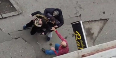 Čovek nasred ulice napada ženu.