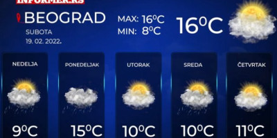 Najniža temperatura od -2 do 8 stepeni, a najviša od 10 na severu Vojvodine do 20 stepeni na jugu Srbije.